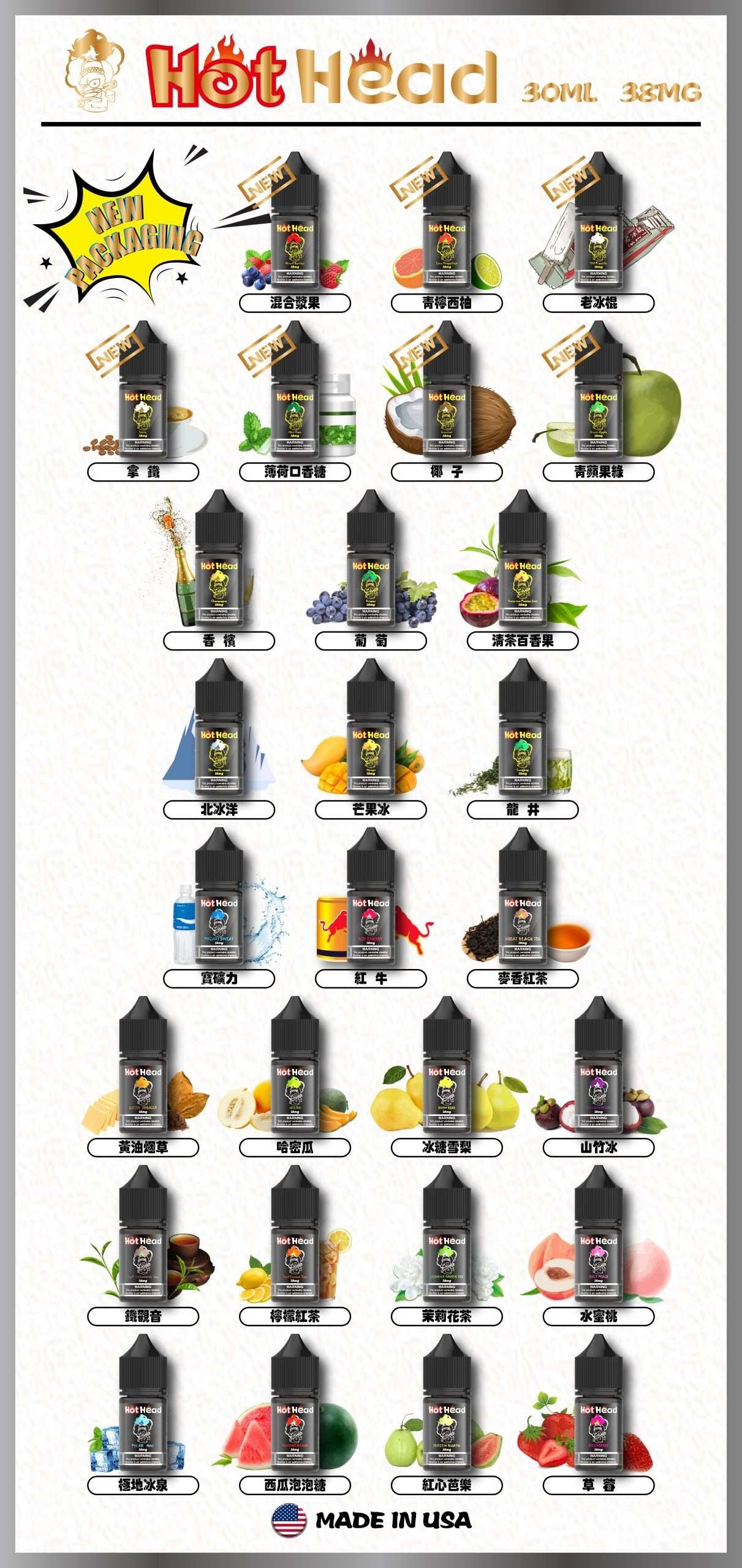 Hot Head 爆脾氣煙油30ML/38MG | 暴脾氣小煙油 | 27種口味 | 美國進口 | 台灣現貨直發