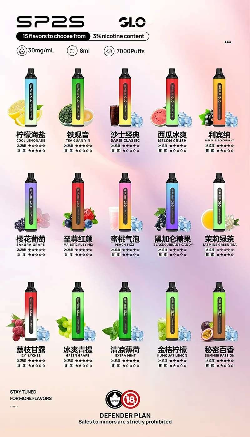 SP2S GLO 7000口拋棄式電子煙 · 口味推薦